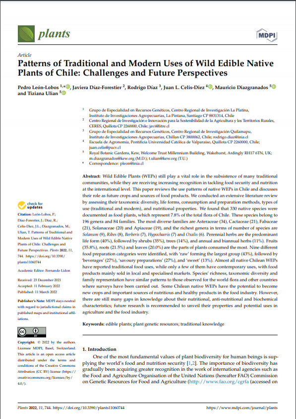 Chile es un importante centro de la diversidad biológica en el mundo, tanto por el alto número de especies endémicas que posee, como por la alta diversidad intraespecífica de éstas. De las 4.655 especies de plantas nativas presentes en Chile, el 46% es endémica, es decir, sólo se encuentran en el territorio nacional. Éstas y otras características hacen de Chile un país muy importante como fuente de recursos genéticos vegetales.